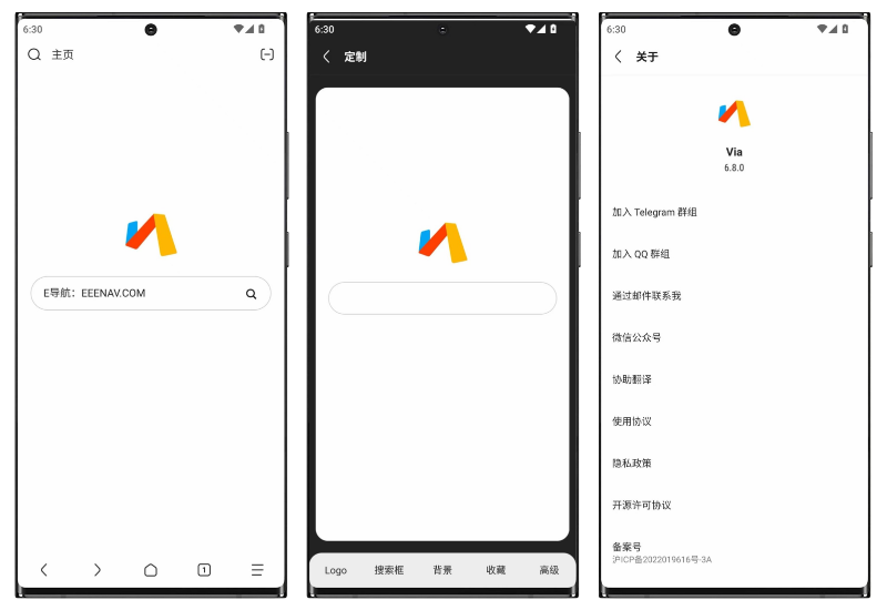 Via简洁轻快浏览器。堪称最小巧最强安卓极简浏览器,纯净无广告、界面简约、功能强大、麻雀虽小,五脏俱全!该手机迷你浏览器采用的webkit内核,支持定制主题、广告拦截、扩展脚本、保护隐私等功能。